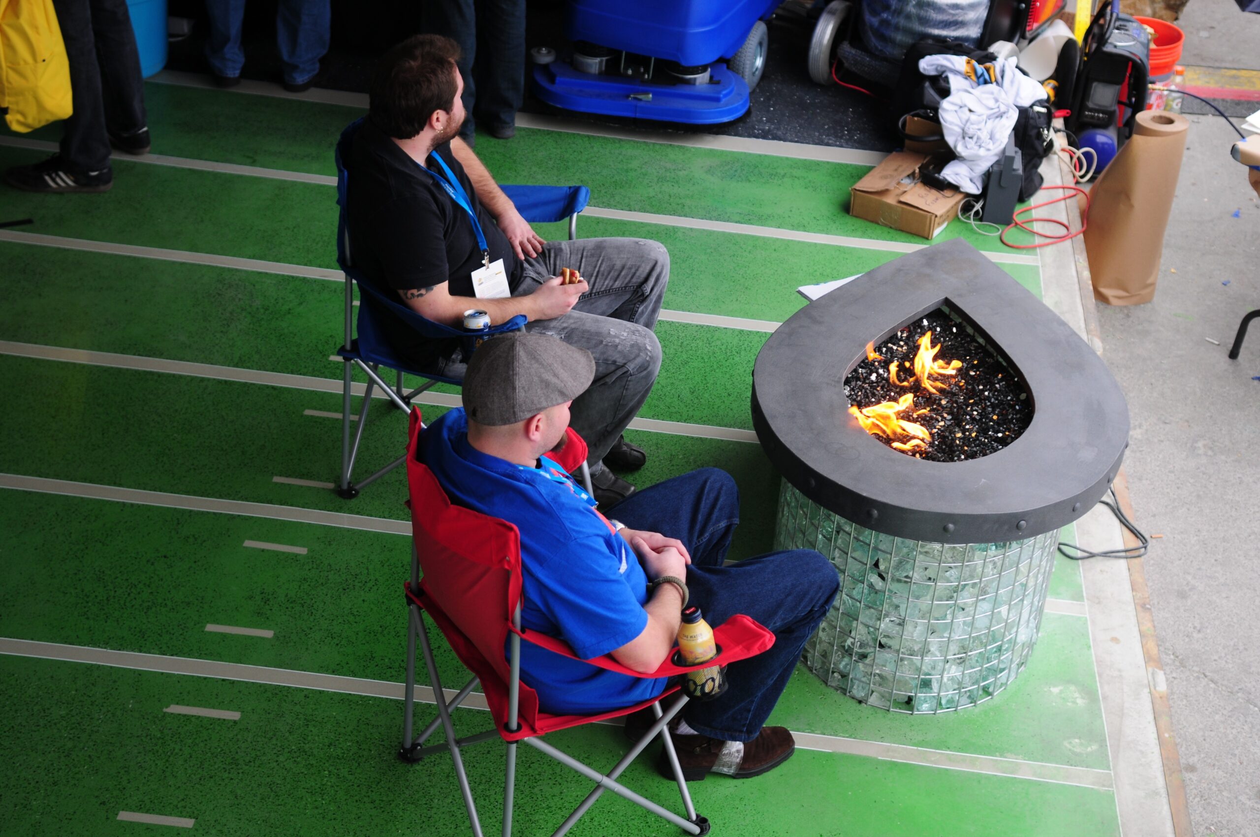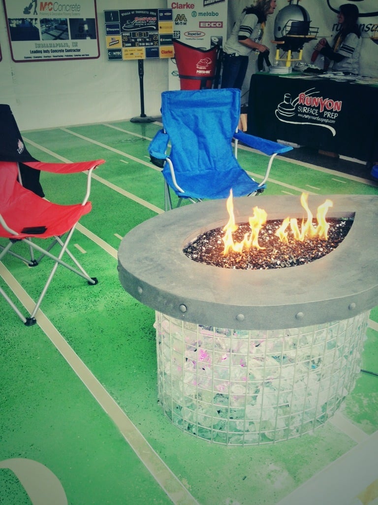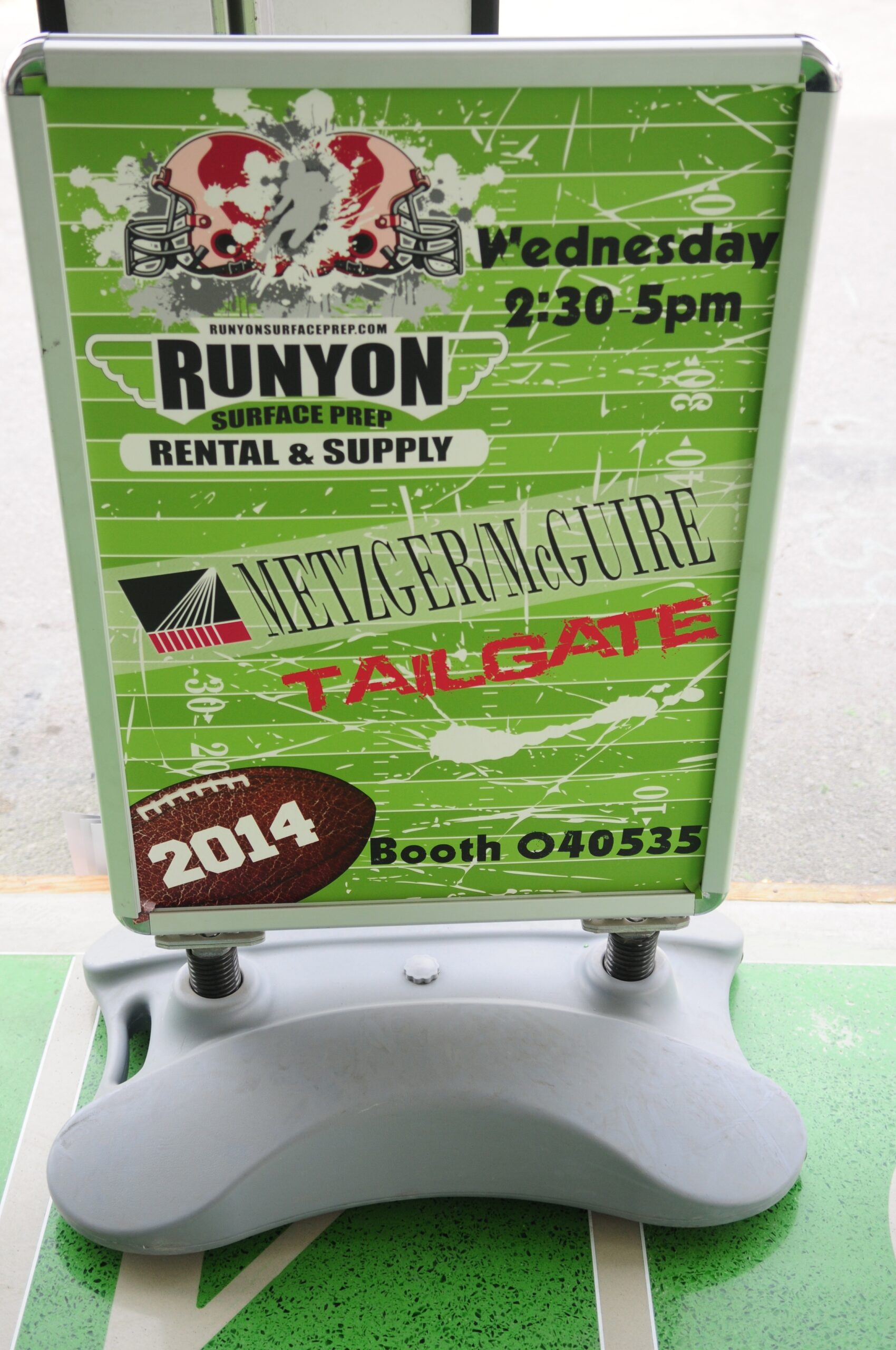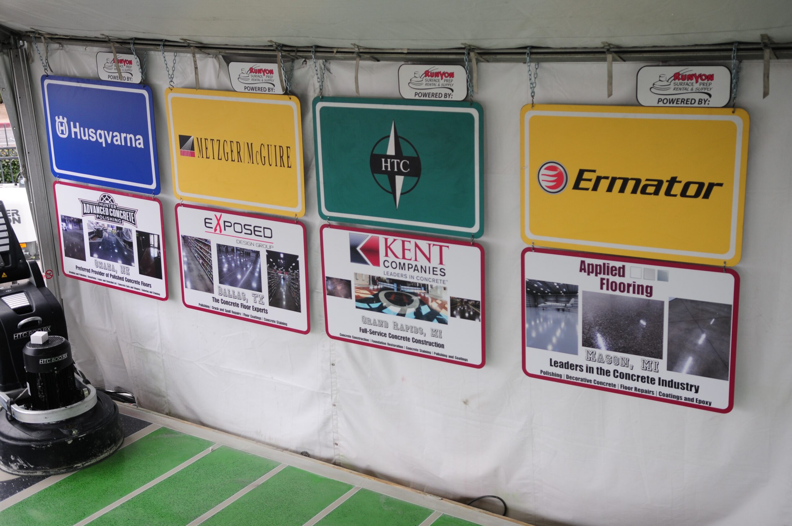 The Super Bowl/football theme for this year’s World of Concrete booth was the brain child of both Wendy Runyon-Ricker and her brother Jack Runyon – figureheads in the company, and creative ones at that. The idea initially stemmed from a general football field slab to the incorporation of Super Bowl team logos in the middle of the slab, then to the tailgates, and from there the featured customer hall of fame stories and booklet, all the signage, etc.