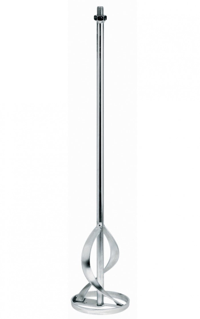 Mix from the bottom up with this heavy-duty galvanized mixing paddle series designed for high viscosity jobs. The helical design mixes the product from the bottom up to prevent air bubbles from being sucked into the material. The paddles are made of robust welded steel and are galvanized for corrosion protection and abrasion resistance. These features make them ideal for continuous, professional use. The end result is a perfect blend for the mixing professional.