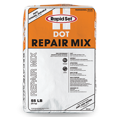 When time is critical for repairing concrete pavements, bridge decks, industrial floors, parking structures, highways, airport runways, and freezer floors, Rapid Set DOT Repair Mix is your solution. DOT Repair Mix is a rich blend of specialty sand, Rapid Set Cement, and additives that are especially durable in harsh environments.