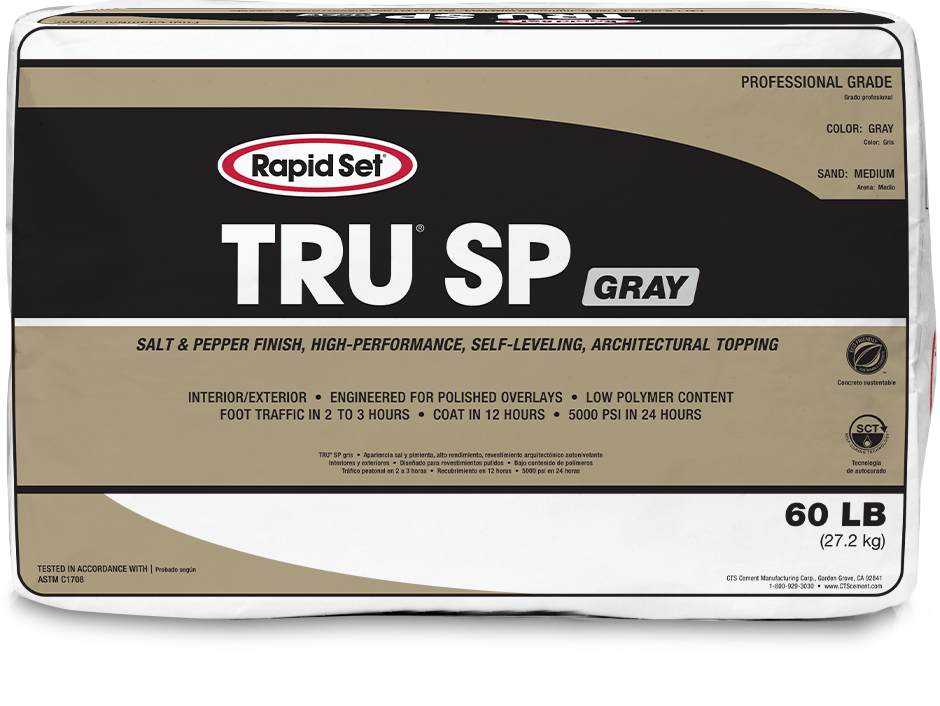 - APPLICATION: Use TRU SP when a high quality, fast, polishable topping is required. TRU SP is ideal for projects that need long flow life and working time while achieving high early strength. Protective coatings, sealers or epoxies can be applied per the manufacturer’s recommendations after 12 hours.