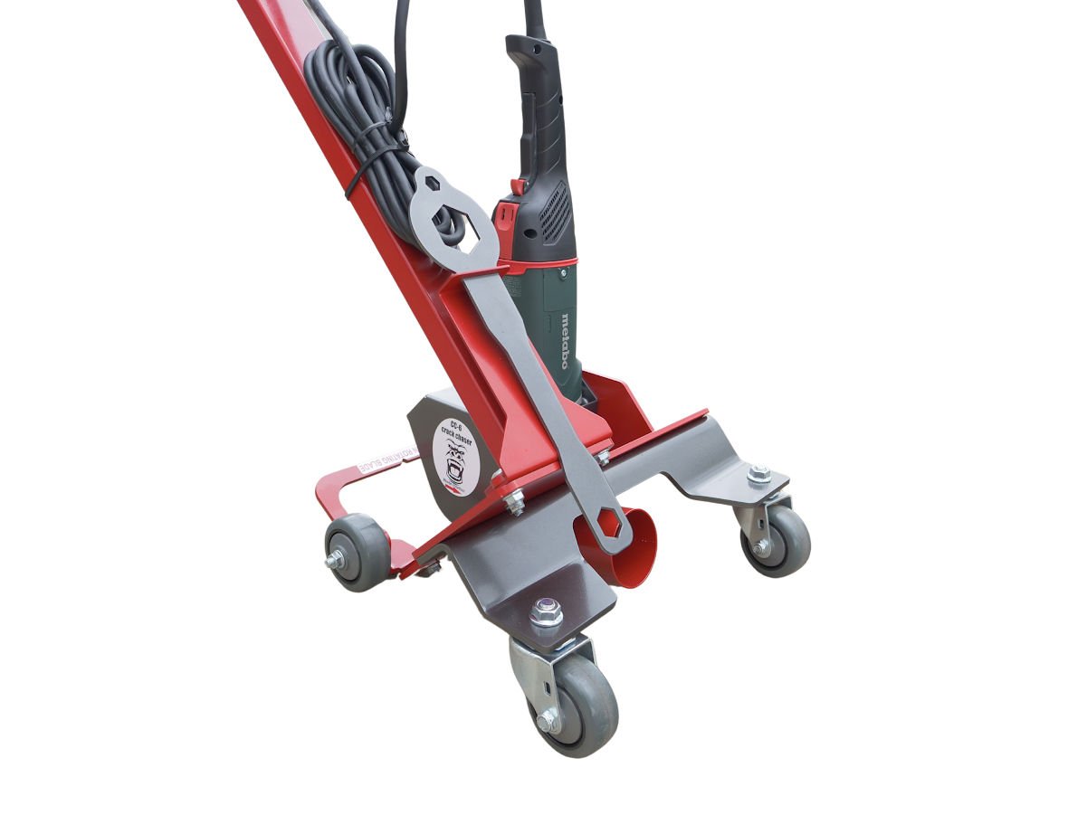 The CC-6 electric crack chaser has taken safety and productivity to another level. The unique rotating control handle allows our crack chaser to be pushed or pulled, giving it excellent blade visibility and versatility. With it’s four precision casters allowing the CC-6 to follow the tightest cracks, each with a 4 position lock that gives the operator more control over maneuverability. Adjusting the cutting depth couldn’t be easier, loosen the thumb knob and slide the stop to your desired cutting depth. And the smooth operating lift and lower mechanism ensures that your desired depth can be achieved from any position. With maximum dust control in mind, the CC-6 has an extra large 3-inch dust port.