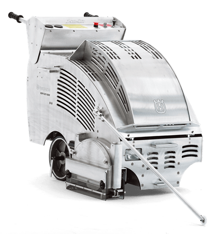 The Husqvarna 4200 self-propelled dry-cutting gasoline saw has a low-noise enclosed design and is ideal for heavy-duty commercial, industrial and paving applications. The 4200 is designed for peak performance. Features include a 23 hp twin-cylinder gasoline engine, three-stage cyclonic air cleaner, oil cooler, full-pressure oil lubrication, hydraulic valve lifters, mechanical fuel pump, and oil alert light. Multiple blade widths can be used, allowing different joint widths and crack control simultaneously.