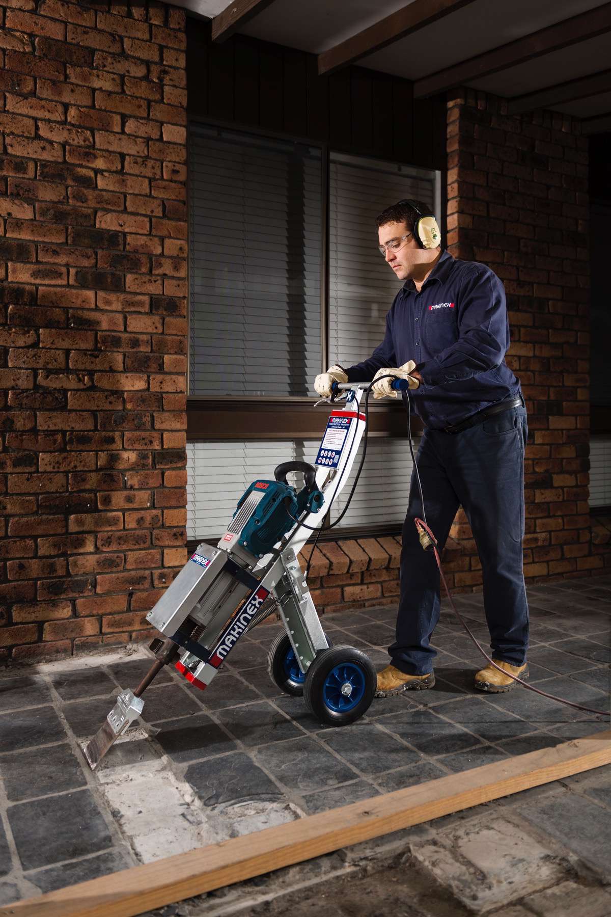 The Makinex Jackhammer Trolley quickly removes floor tiles with some customers claiming they can do their demolition job up to 6 times faster than when using a jackhammer alone.