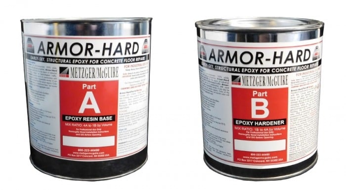 ARMOR-HARD Epoxy Liquid Concrete Sealer is a two-component, 100% solids epoxy system with early set properties. It was developed specifically for the repair of industrial concrete floors subject to hard-wheeled traffic.