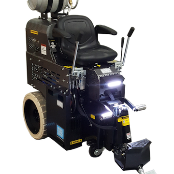 The 8000 propane ride-on scraper is the largest of our Ride-on Scrapers. With 3000 lbs of weight, 21″ tires, and a rugged steel frame, this scraper is a true demolition machine. The power and flexibility of propane power allows the operator to work around-the-clock.