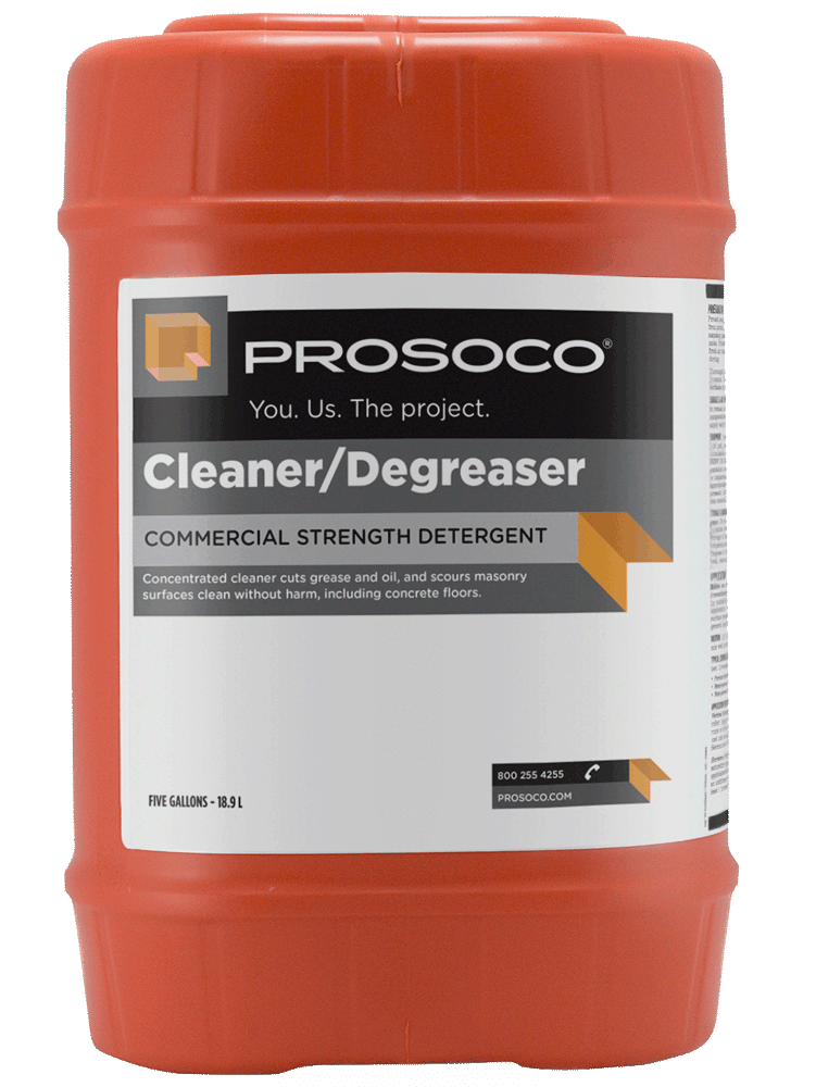 Easy-to-use Cleaner/Degreaser is compatible with PROSOCO protective treatments, including all Consolideck® hardener/densifiers, color coats and stains.