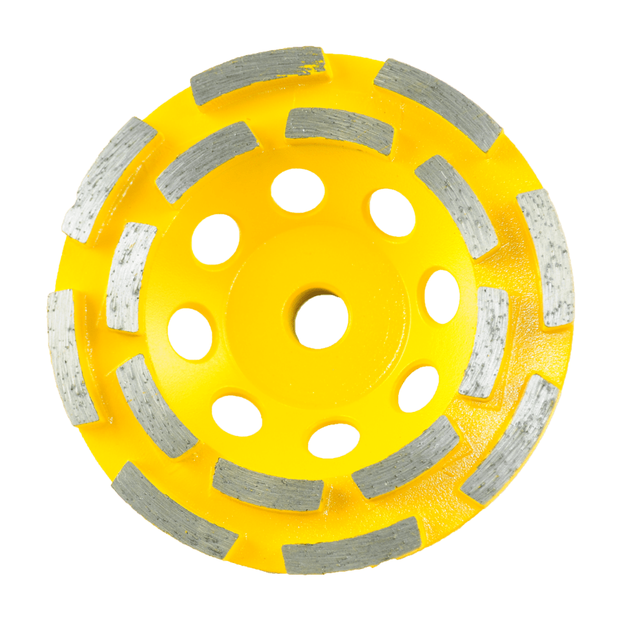 The Runyon Surface Prep Threaded Double Row Concrete Grinding Cup Wheel 5/8″-11 is a grinding wheel for aggressive removal, shaping and smoothing of concrete. Double Row cup wheels were the original cup wheel design. They are aggressive for a metal bond cup wheel and tend to leave circle marks due to the way the segments are configured. Light coating removal and general concrete preparation are the typical applications they are used for.