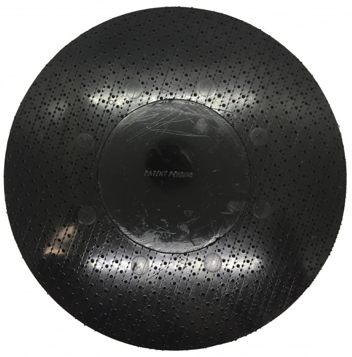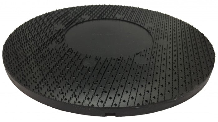 Runyon Surface Prep is proud to announce the introduction of an innovative tool holding system for power trowels, auto scrubbers, and swing machines. The Magnetic Preload System allows for the fast and efficient changing of tools. This fiber pad adapter fits onto the Magnetic Preload drive plate. It features a heavy-duty attachment face for any 14″ velcro-backed pads. Instead of using the 14″ magnetic rings that hold 3″ tooling (metals, hybrids, or resins), this 14″ pad adapter holds full-face hogs hair resin pads, black stripping pads, etc. This comes in a variety of sizes (11″, 14″)