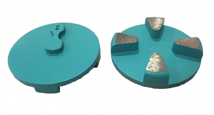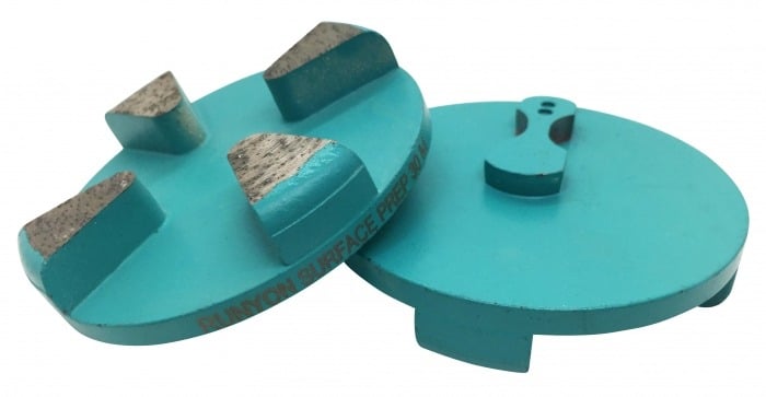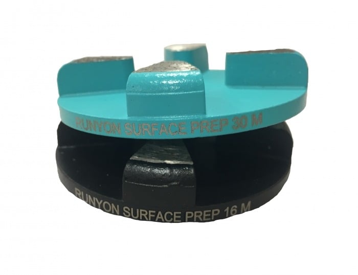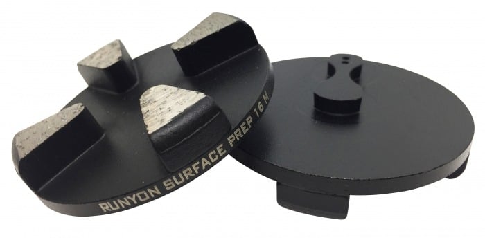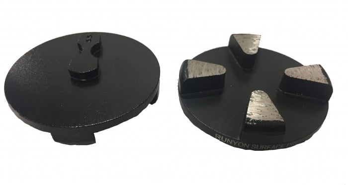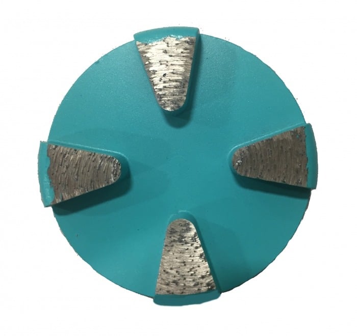 The RSP Quattro 4-Seg is an aggressive tool similar to a cap cutter. This tool is ideal for large aggregate exposure. It’s available in 16, 30, 70, and 120 grit and extra soft, soft, medium, or hard bond hardness. The current life of these tools is approx. 15,000 square feet. Due to the aggressiveness of this tool, it can only be run at 200-300 rpm under a floor grinder. This is a heavy-cutting tool ideal for quick aggregate exposure. It’s designed to quickly remove the cap and can be used to remove thin mil coatings. You can use double the head pressure on smaller machines (pounds per square inch) v. comparable products. In fact, this tool is ideal for 110V machines, swing machines, and light grinder models. Half the segments to the floor means it makes the cut much faster.