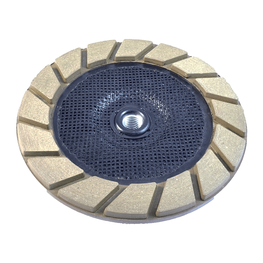 This threaded transitional cup wheel features a revolutionary design that improves the quality of edgework while reducing the scratches and gouging that metal cup wheels cause.