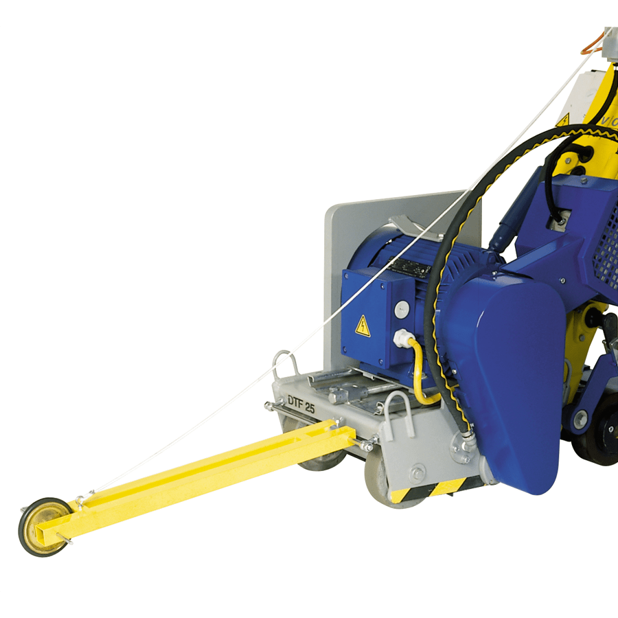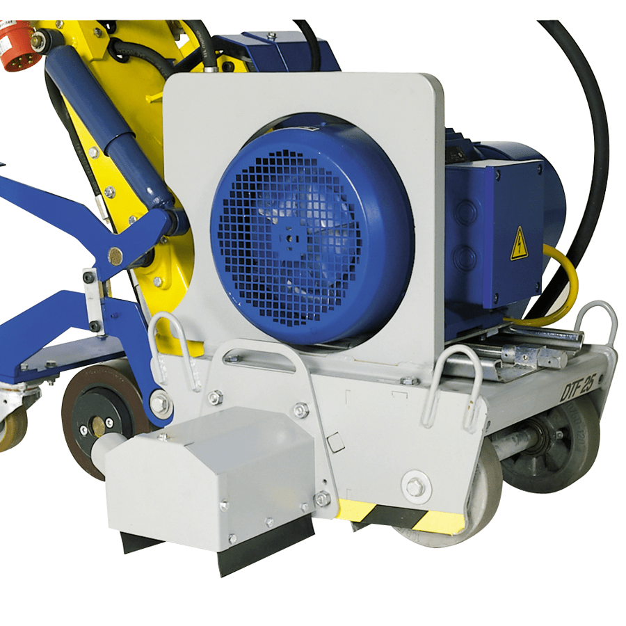 With the DTF25 SH the surface is carefully “ground off“ instead of chipping it away. Thus the machine runs calmly and produces a smooth surface. The DTF 25 SH has a drum that is equipped with diamond blades. It removes the material very precisely. For running the machine you must connect the water cooling system so the diamond blades do not overheat. The machine is available as an 11 kW electrical version with a hydraulic traction unit. The DTF 25 SH comes standard equipped with drum and diamond turbo blades