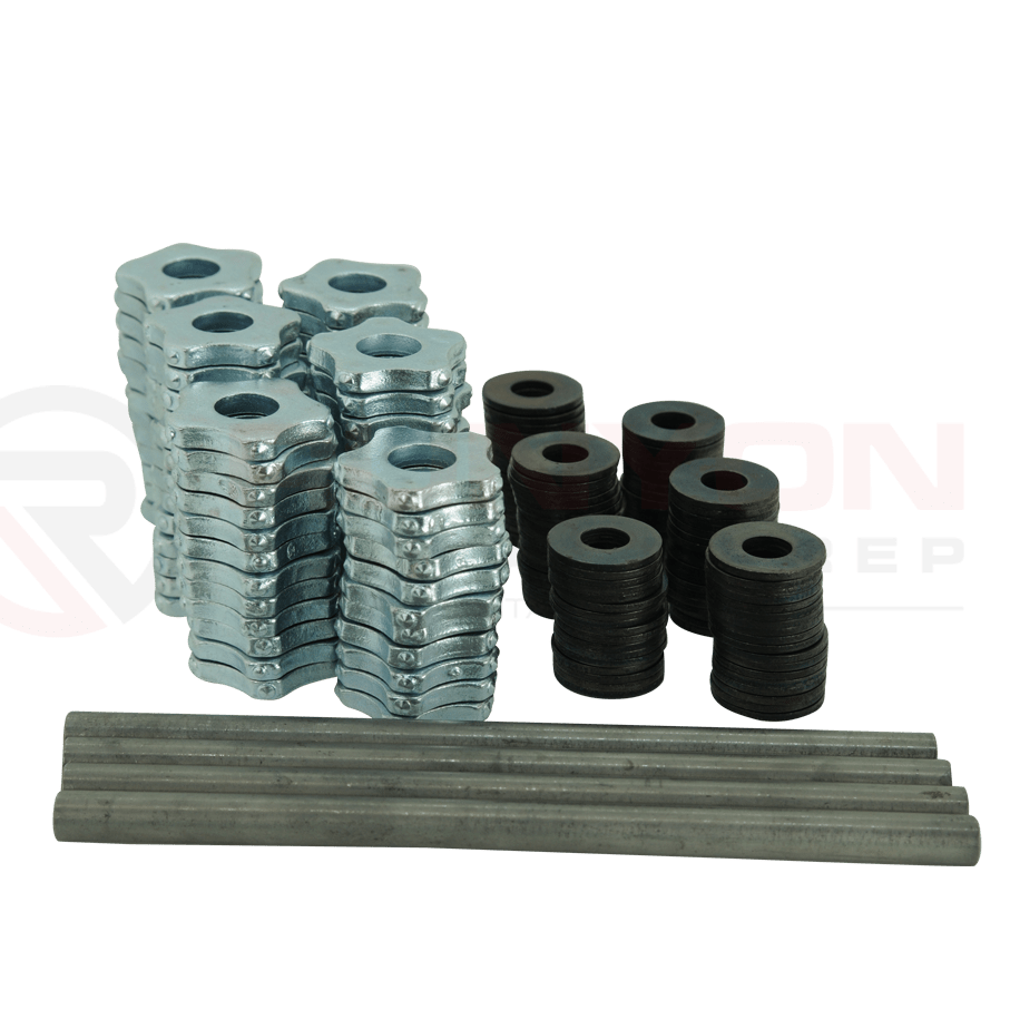 This set includes 4 flail shafts, washers, and 76pcs pentagonal cutters.