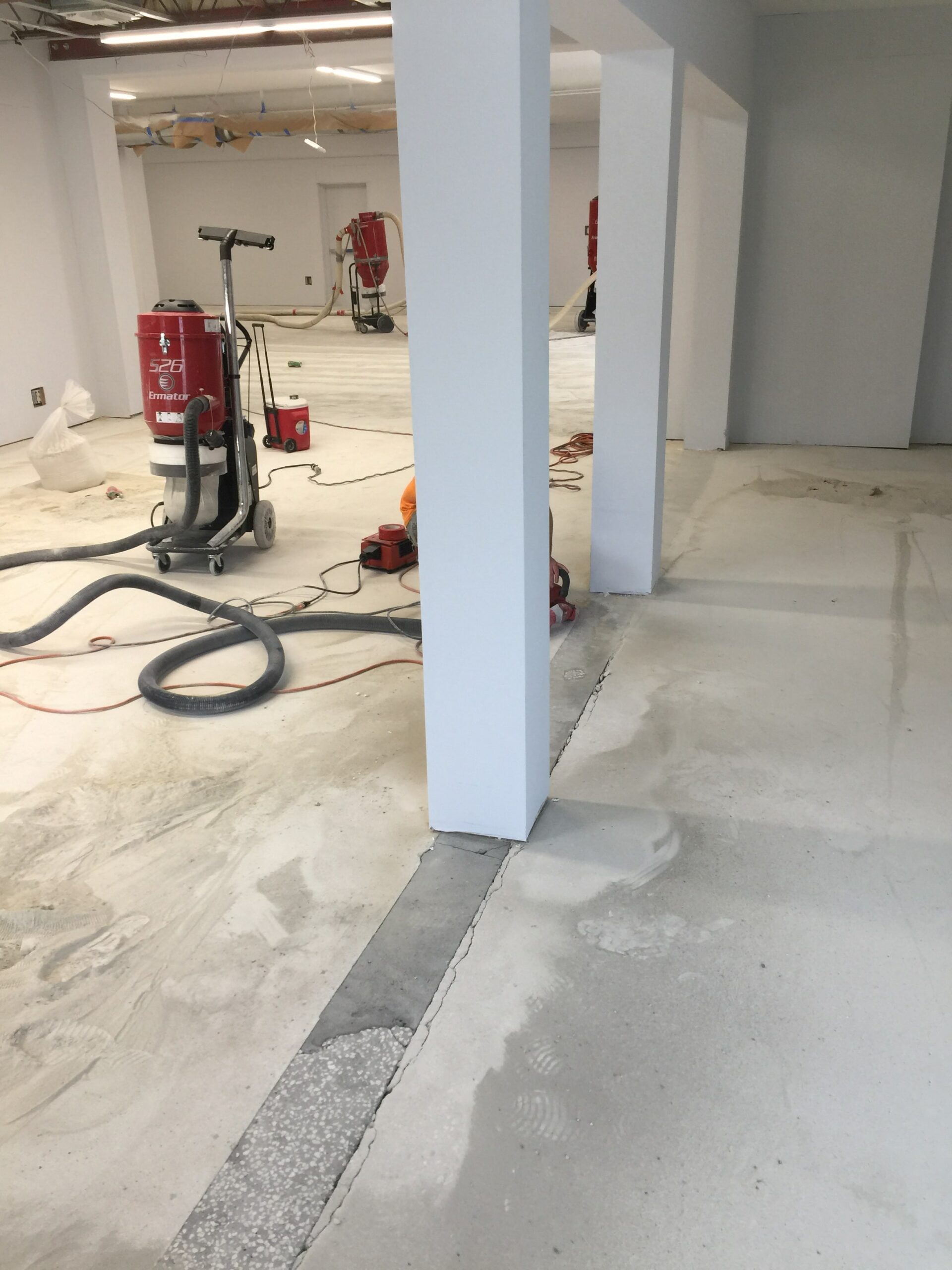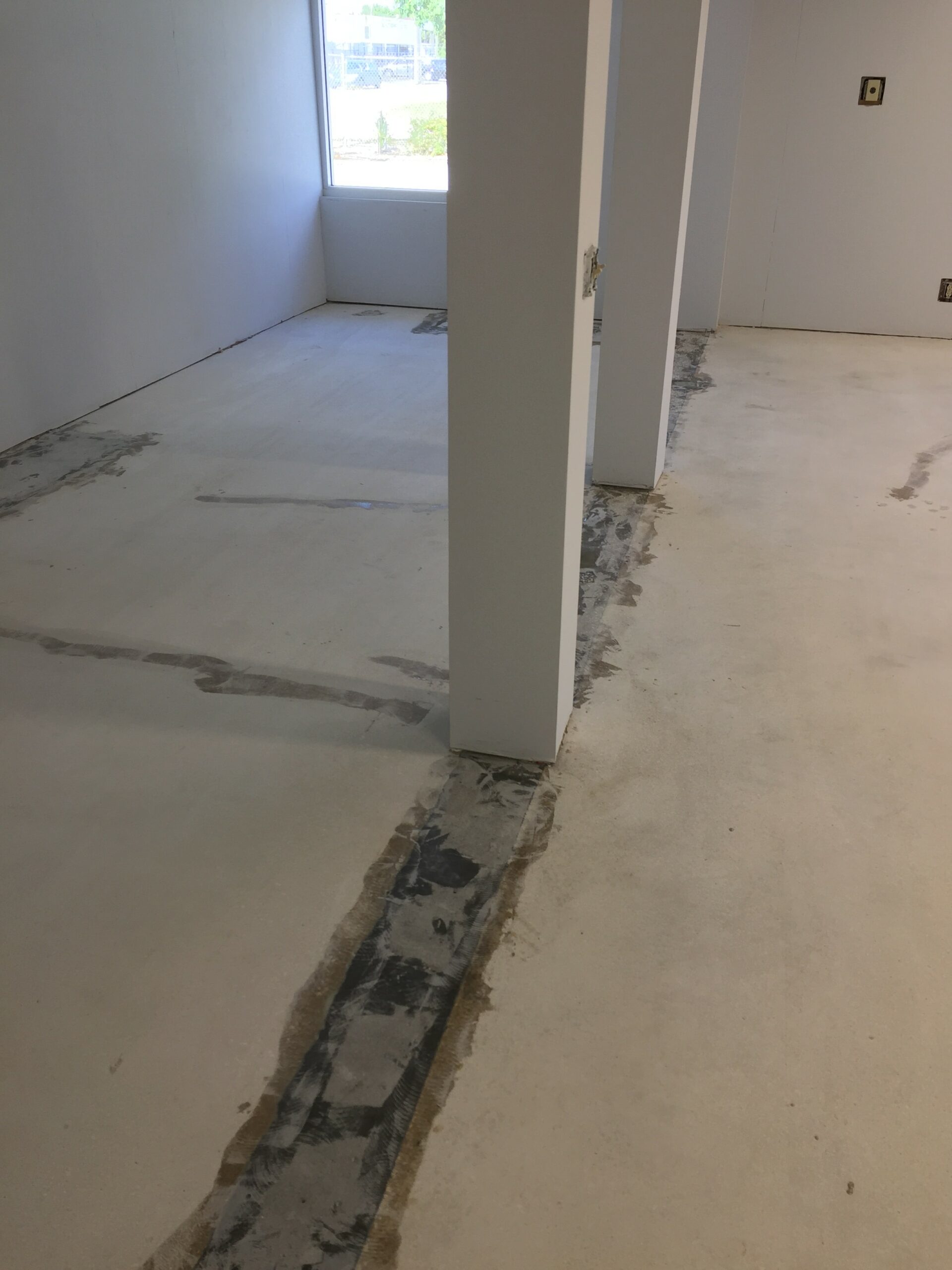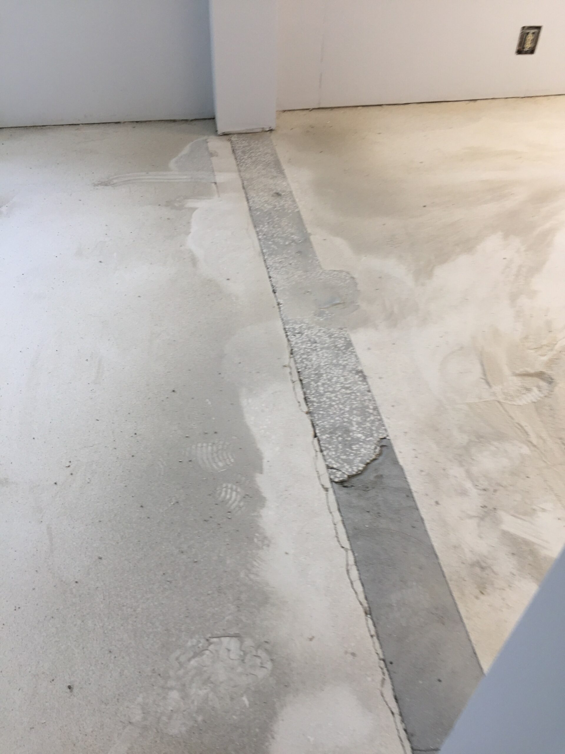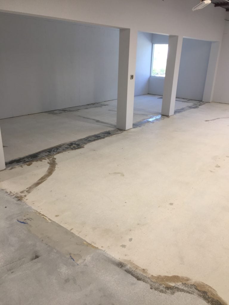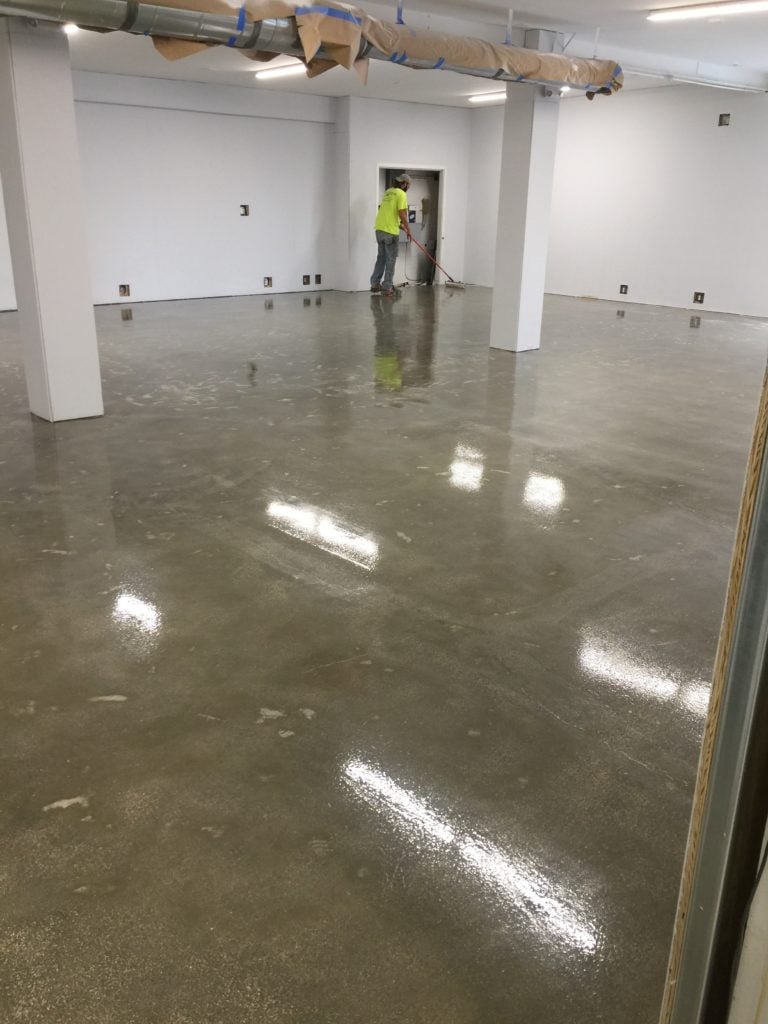 Artistic recently re-did their 1,300 square foot office floor. They cut off the old white overlay and transitioned it to an epoxy metallic floor. They kept the same detailed saw-cut design work.