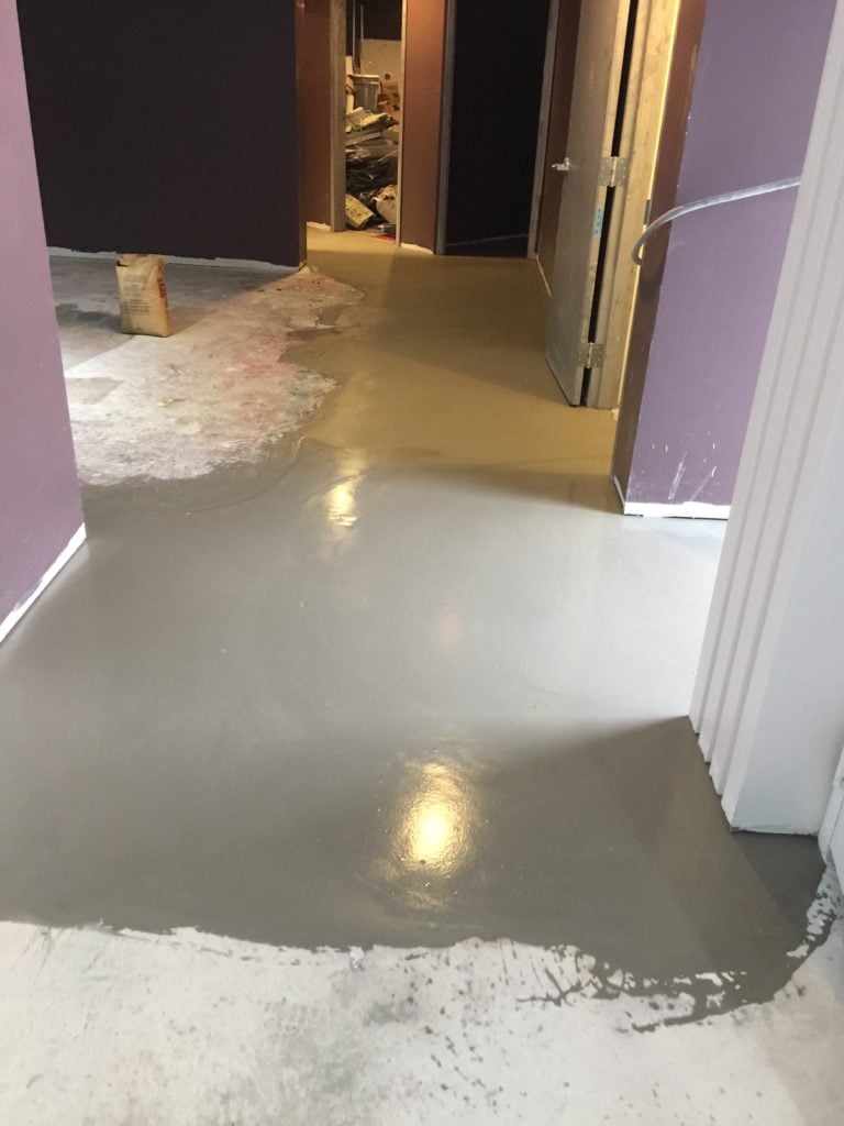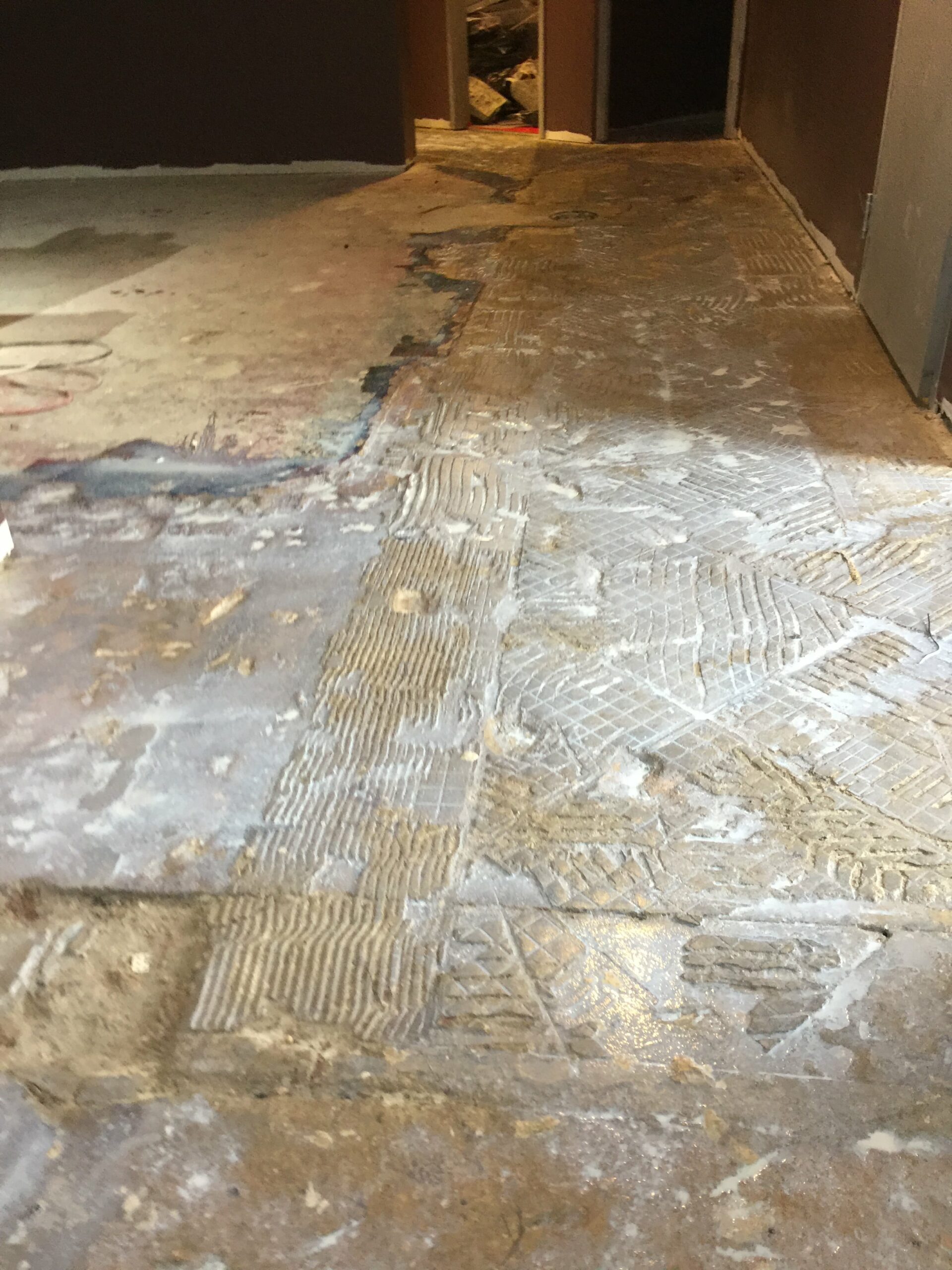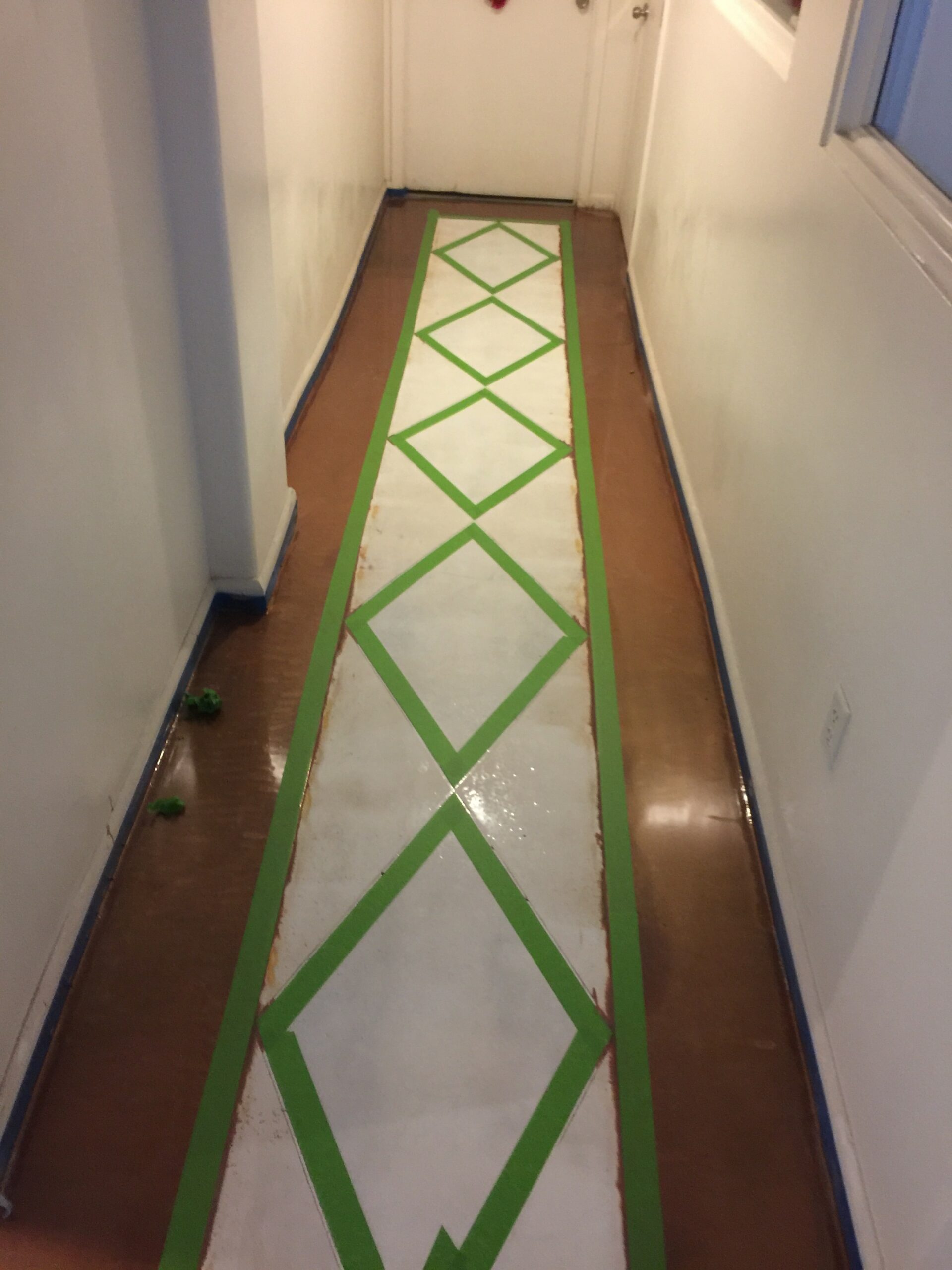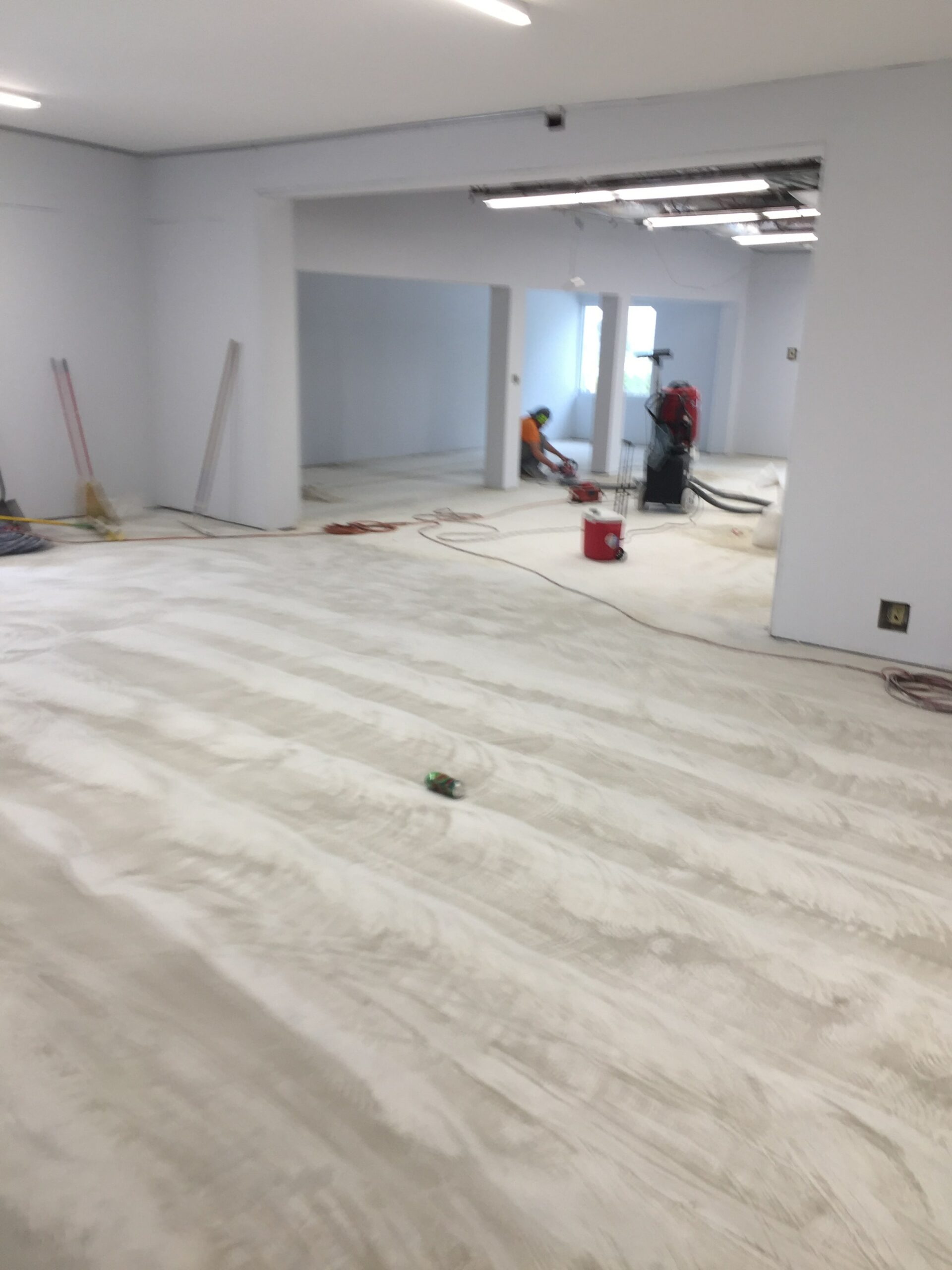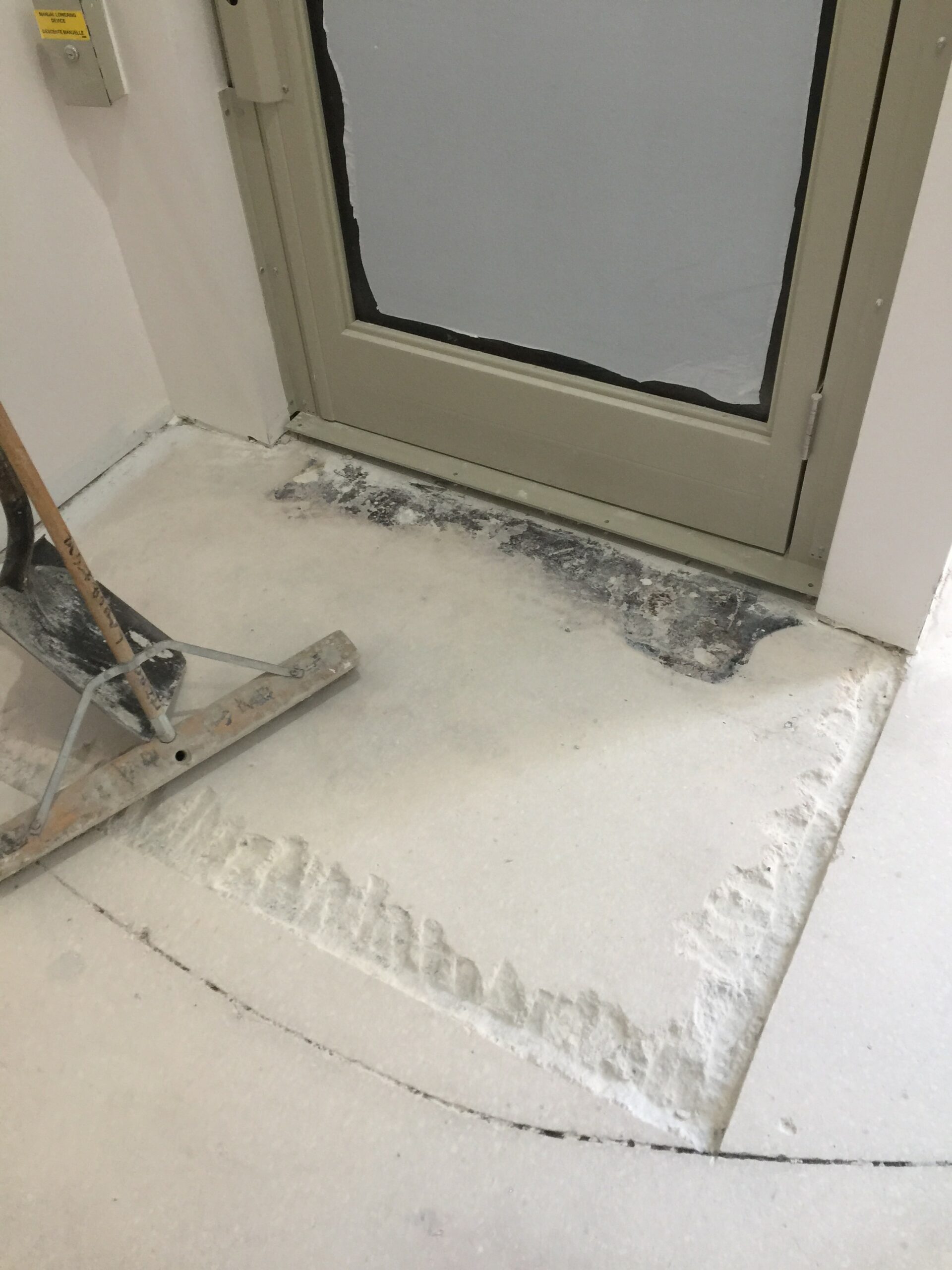 Artistic recently re-did their 1,300 square foot office floor. They cut off the old white overlay and transitioned it to an epoxy metallic floor. They kept the same detailed saw-cut design work.
