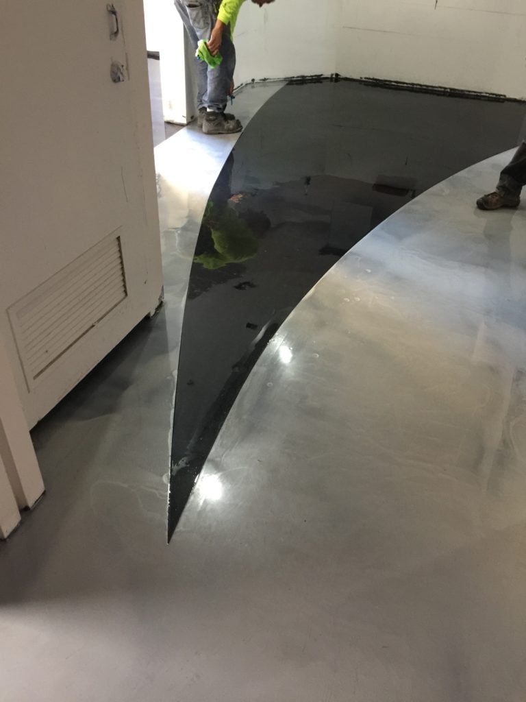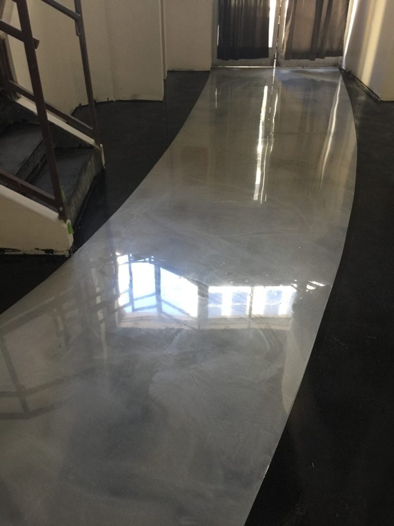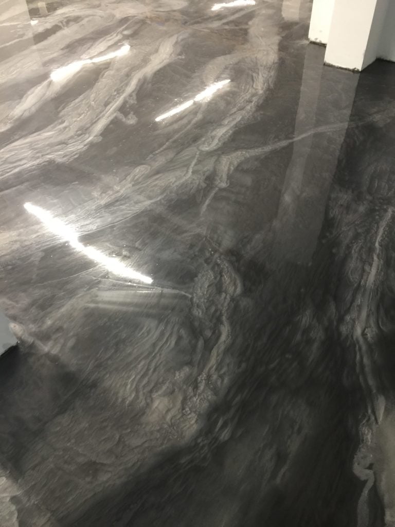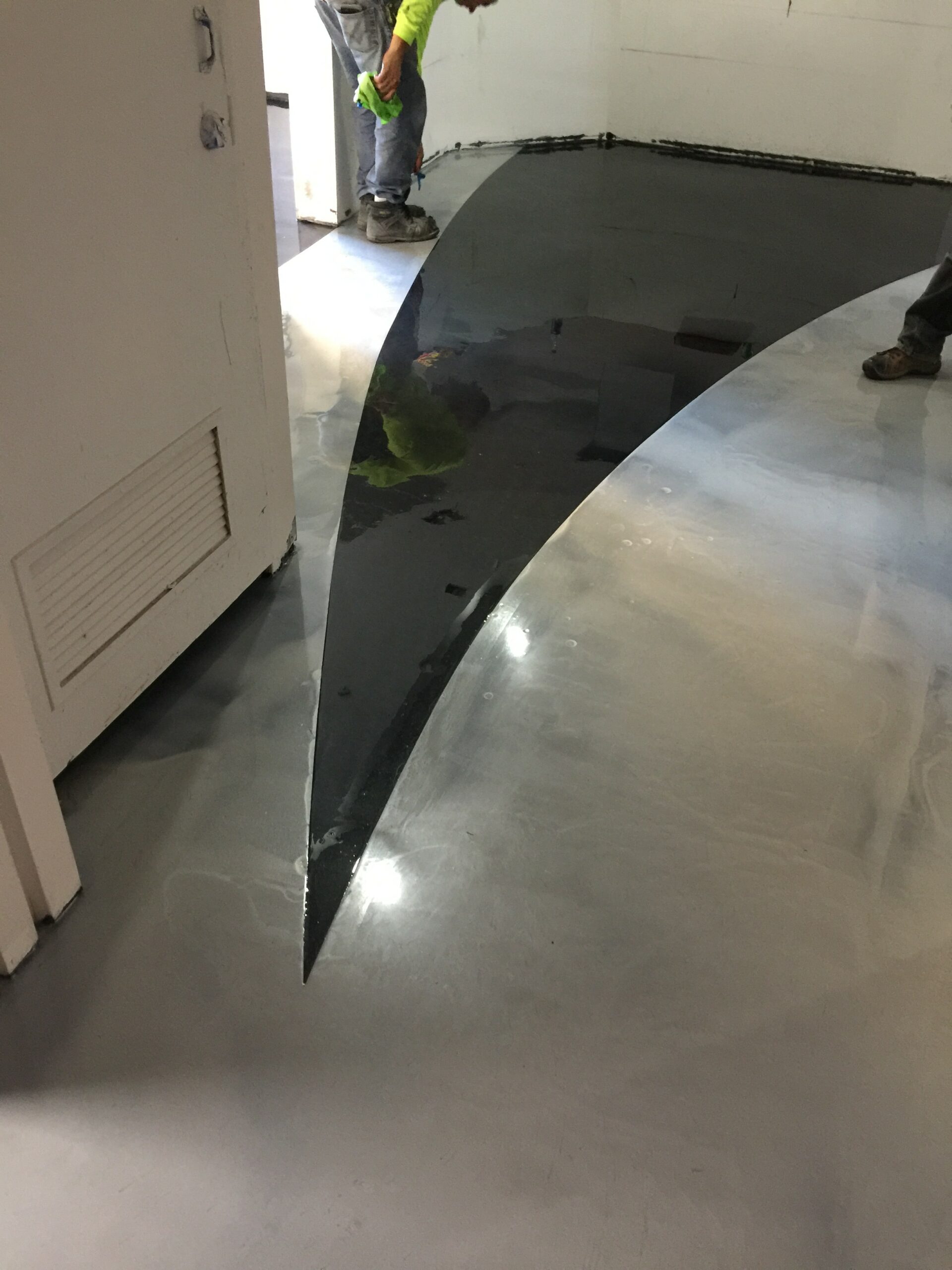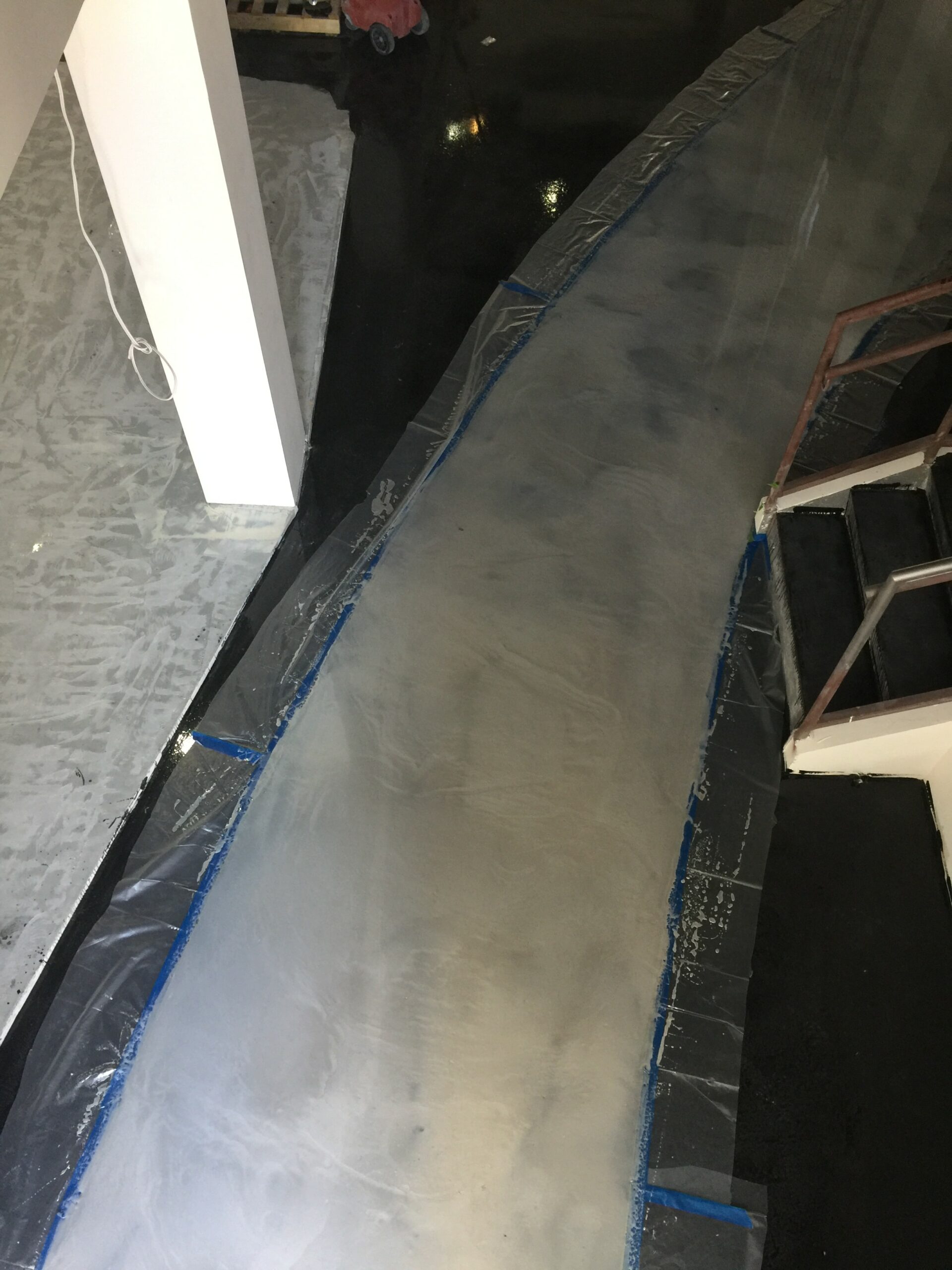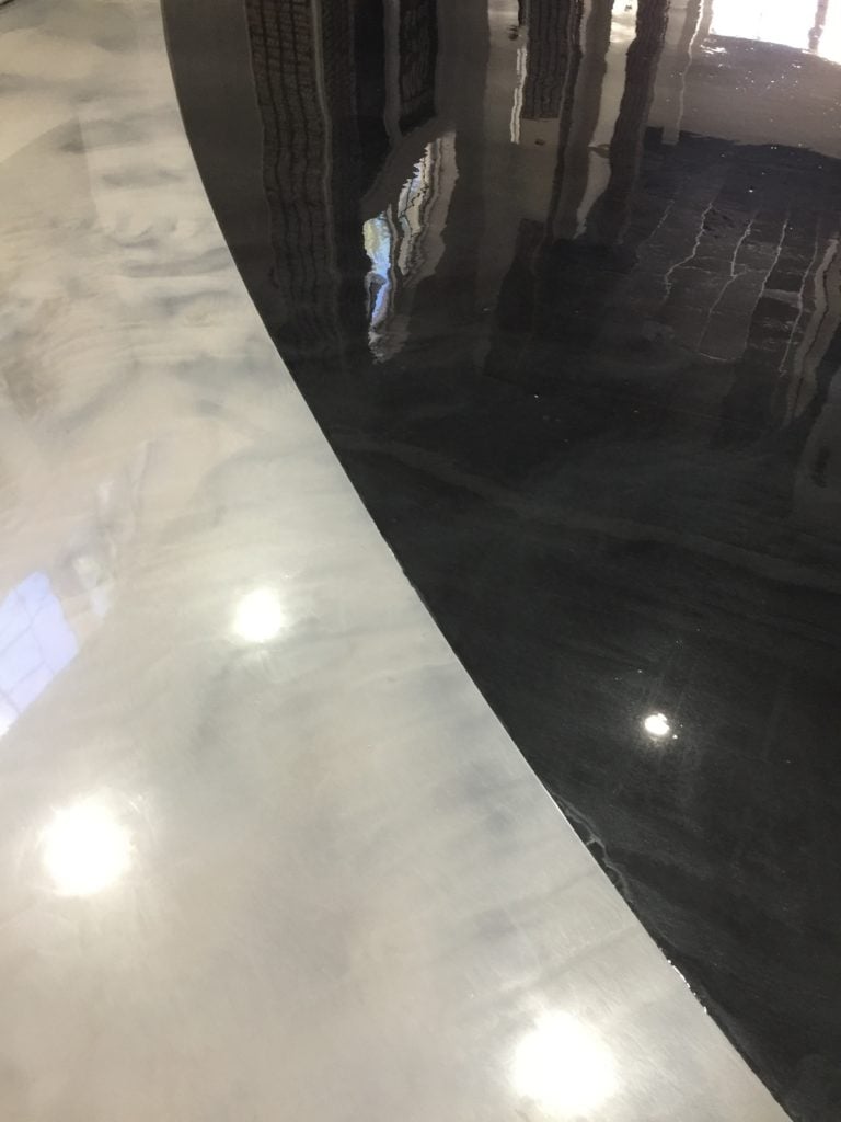 Artistic prepped the surface with an HTC 800, Ermator T8600 and 25 grit HTC diamonds. This is a grey epoxy with a combo of Sterling, Onyx and Quick Silver metallic pigments.