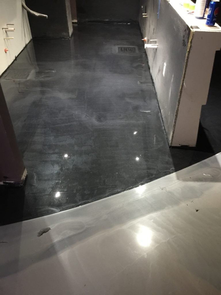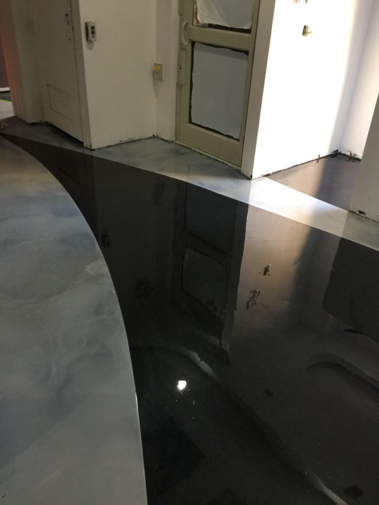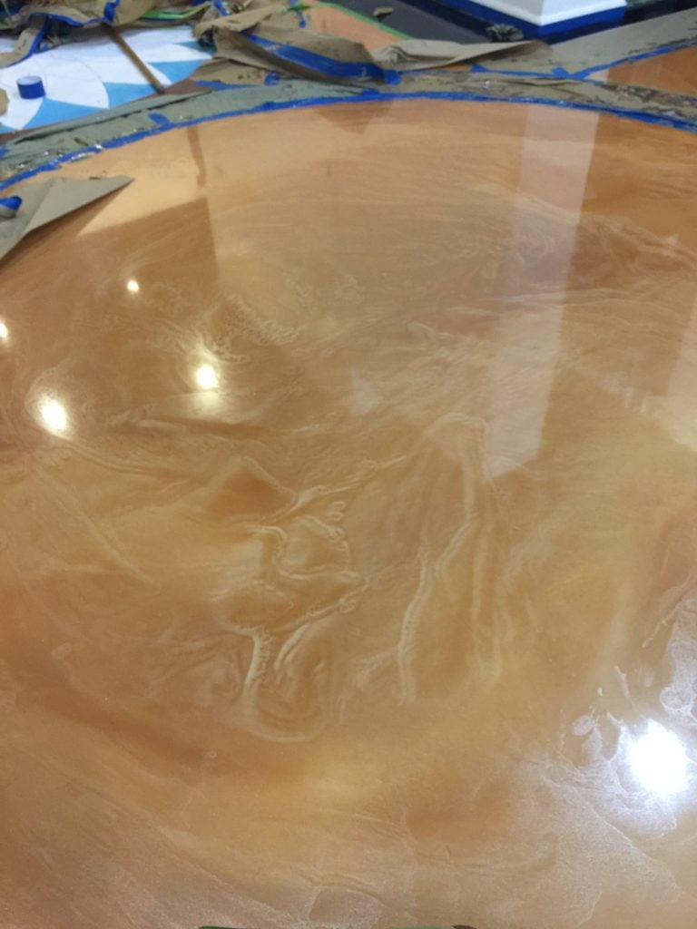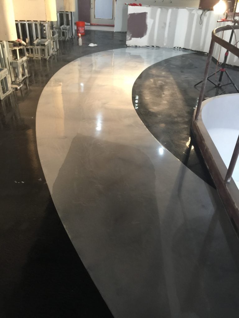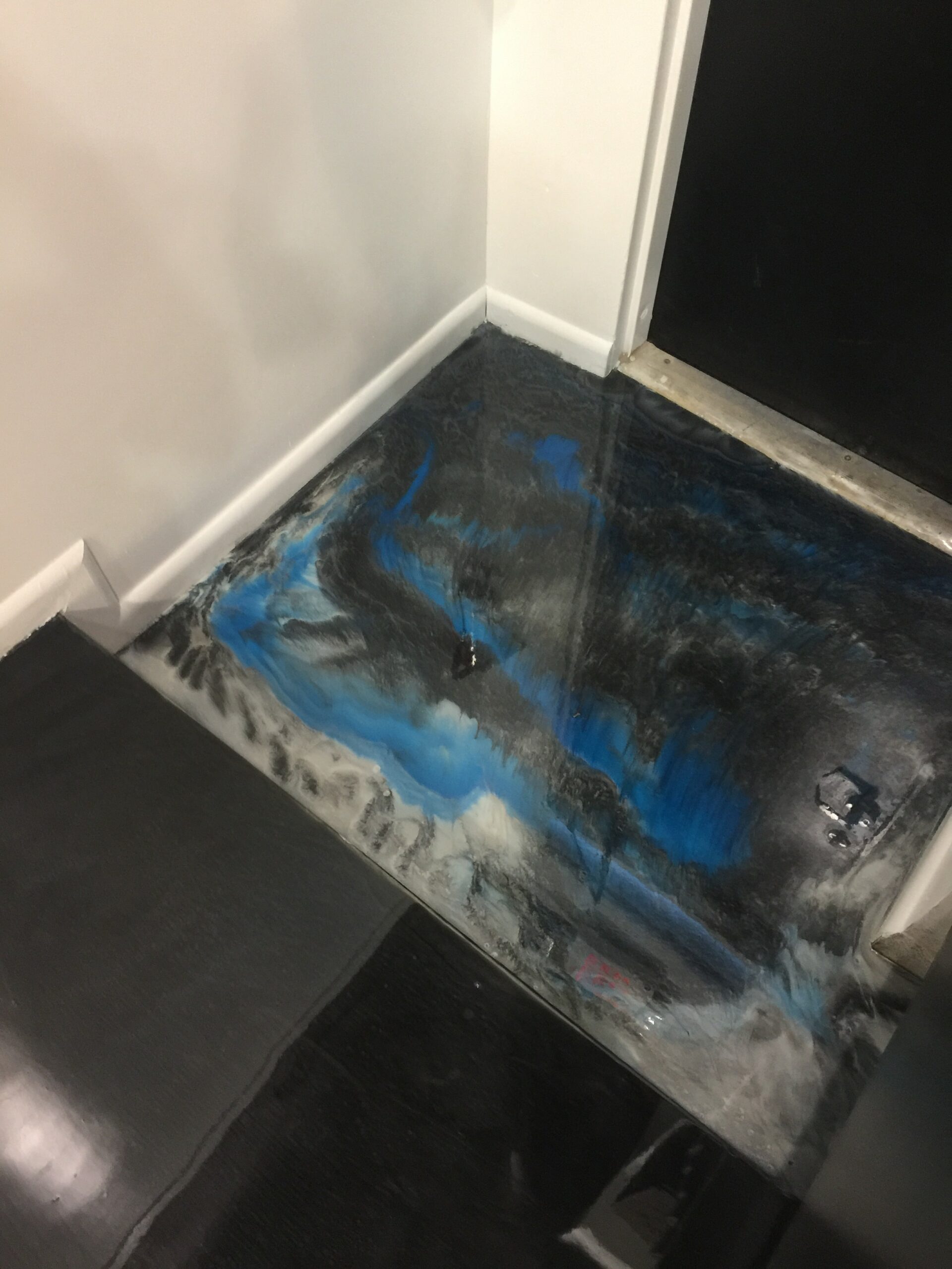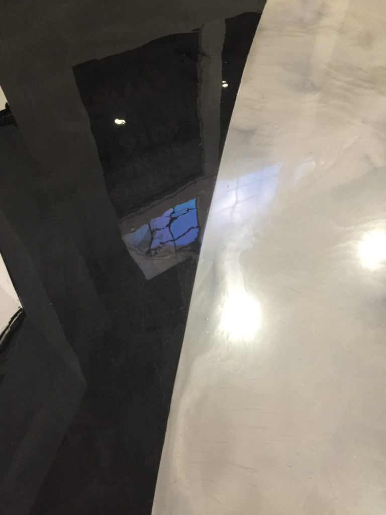 Artistic prepped the surface with an HTC 800, Ermator T8600 and 25 grit HTC diamonds. This is a grey epoxy with a combo of Sterling, Onyx and Quick Silver metallic pigments.