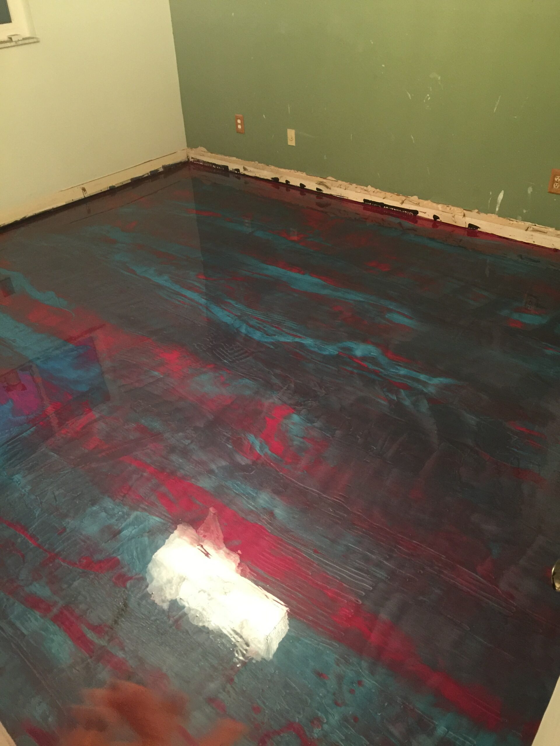 This blue and pink metallic floor looks like cotton candy. It is located in a residential dressing room. Artistic partnered with Coastal Construction for this job.