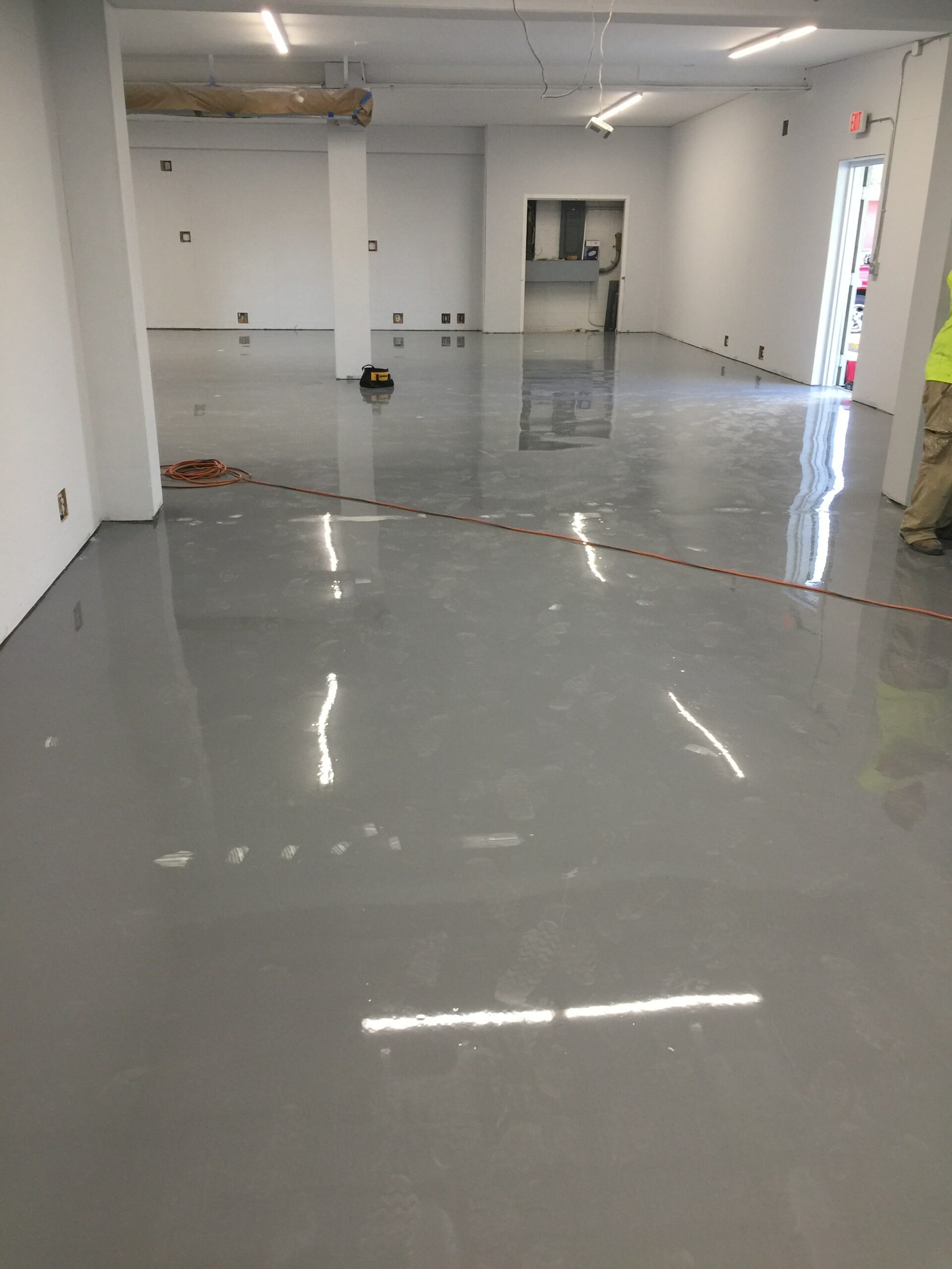 This 3,600 square foot charcoal floor is owned by a high profile client. It’s a private residence, used to store the owner’s cars, sports memorabilia, and other appropriately coined “toys”.
